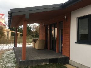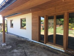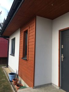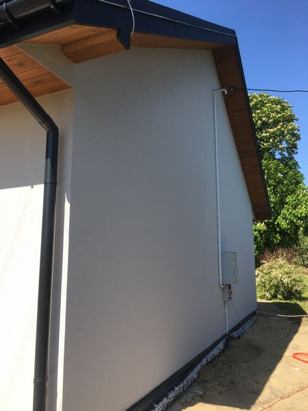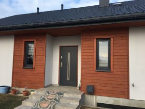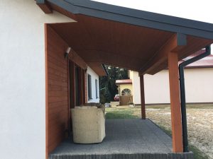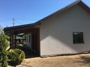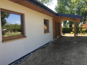 - ściany zewnętrzne w konstrukcji szkieletowej C 24, wykończone tynkiem silikonowym na płycie steico-protect 60mm