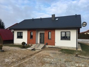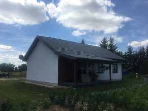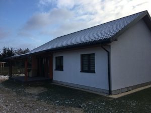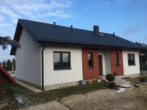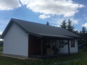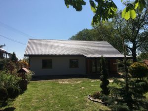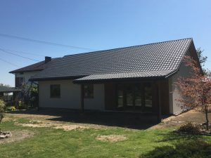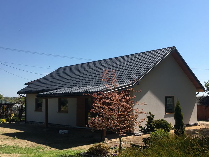 - dach pokryty blacho-dachówką wraz z montażem rynien
