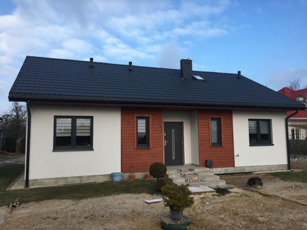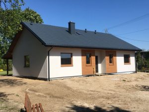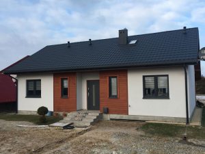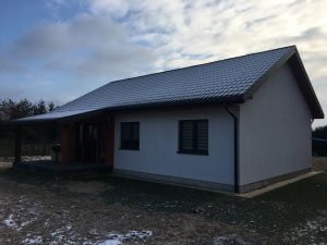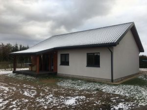 Dom parterowy o powierzchni użytkowej 109m2. Jest to przestronny dom z trzema sypialniami , dużym salonem i aneksem kuchennym. Dom posiada także pomieszczenie techniczne , które może służyć jako kotłownia. Atutem jest także zadaszony taras o pow. 15m2 na który wychodzi się prosto z salonu.