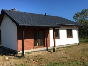 • dach pokryty blacho-dachówką wraz  z montażem rynien
