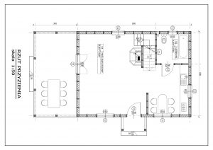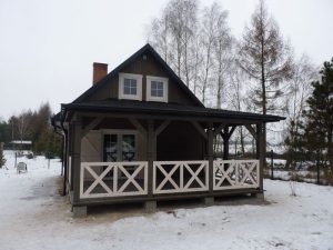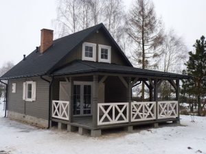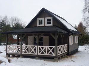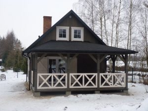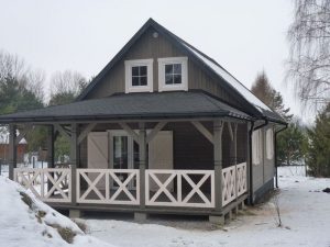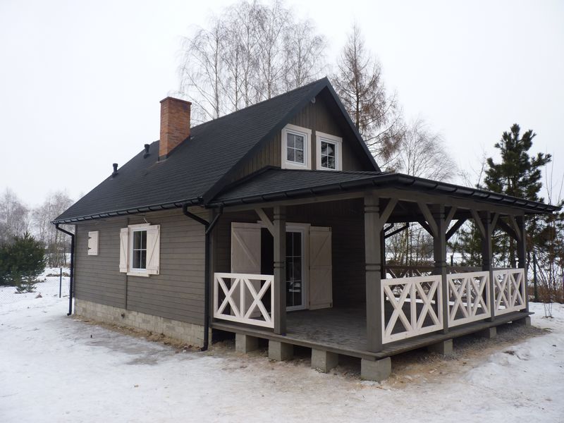 Dom zaprojektowany w technologii szkieletowej przewidziany jako dom sezonowy, w którym może wypocząć kilkuosobowa rodzina. Parter pełni funkcję dzienną, jest tu salon z kominkiem, aneks kuchenny  oraz łazienka.Poddasze przeznaczone jest do wypoczynku nocnego  są tu trzy pokoje z przeznaczeniem na sypialnie. Z salonu wychodzi się na duży zadaszony taras , na którym bez problemu zmieści się duży biesiadny stół do spędzania wolnego czasu z rodziną.