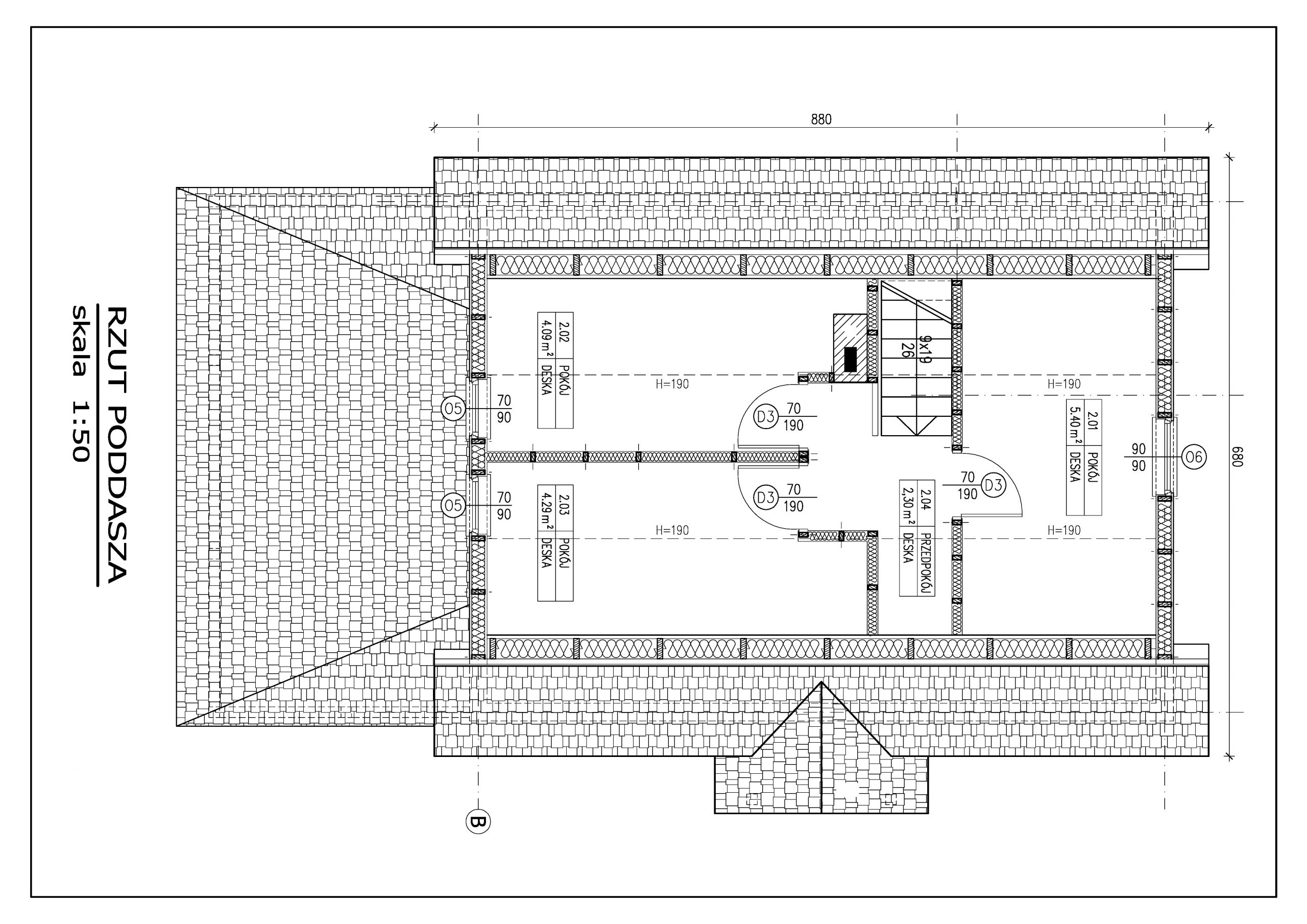 • ocieplenie poddasza wełną celulozową 200mm i wykończenie od wewnątrz płytą g-k