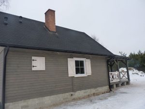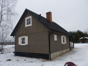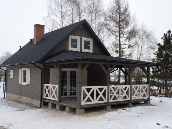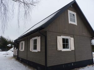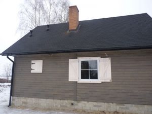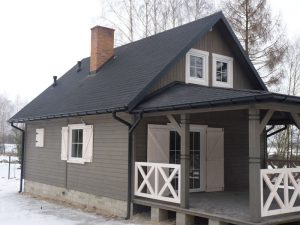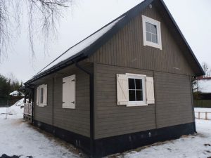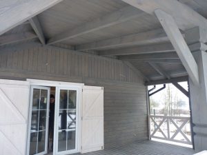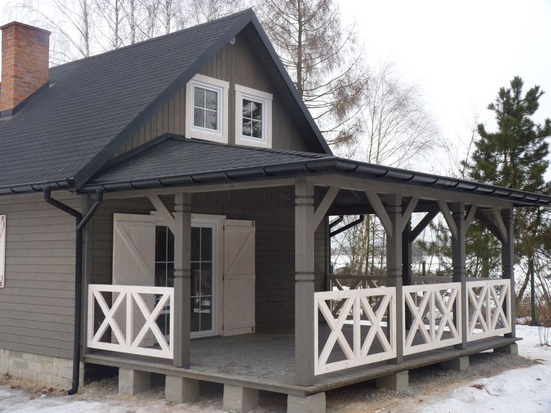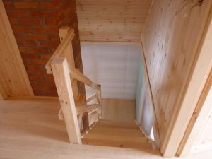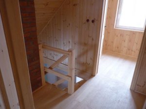 • ściany zewnętrzne parteru i poddasza w konstrukcji szkieletowej szalowane deską sosnową