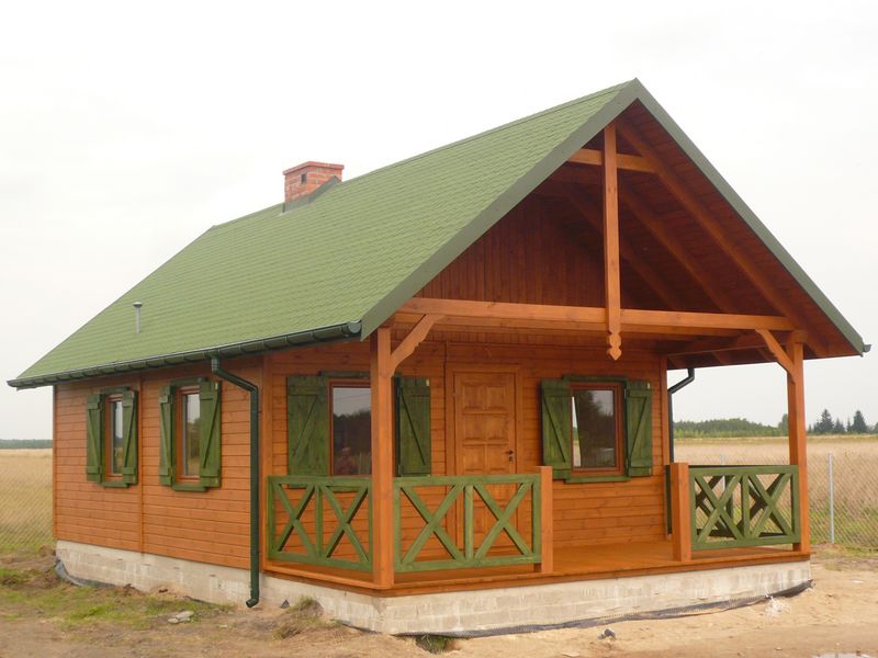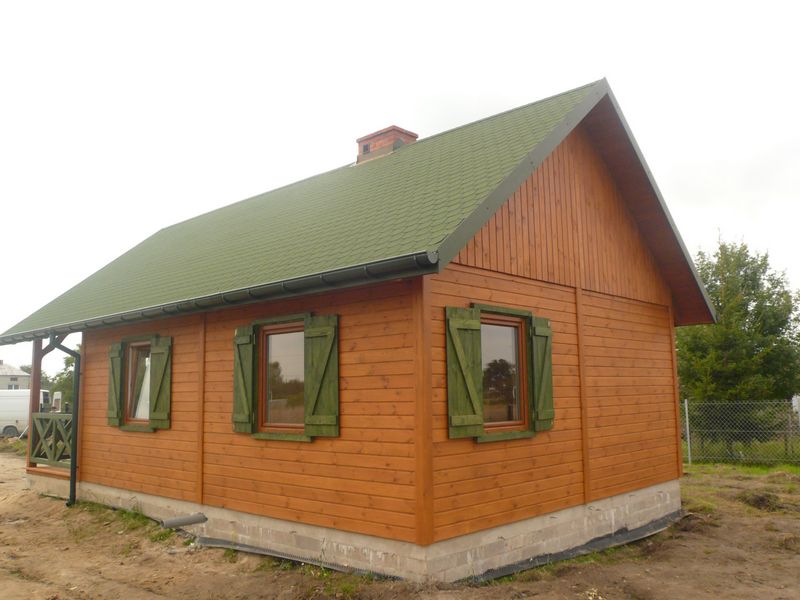 - ściany zewnętrzne parteru w konstrukcji szkieletowej szalowane deską sosnową