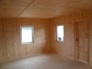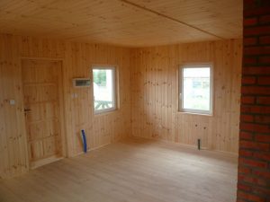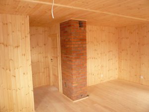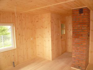 - ocieplenie parteru wełną mineralną 100mm i wykończenie deską boazeryjną