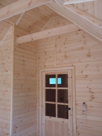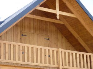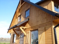 - ściany zewnętrzne parteru w konstrukcji szkieletowej szalowane deską sosnową