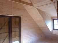 - ocieplenie poddasza wełną celulozową 200 mm i wykończenie płytą g-k